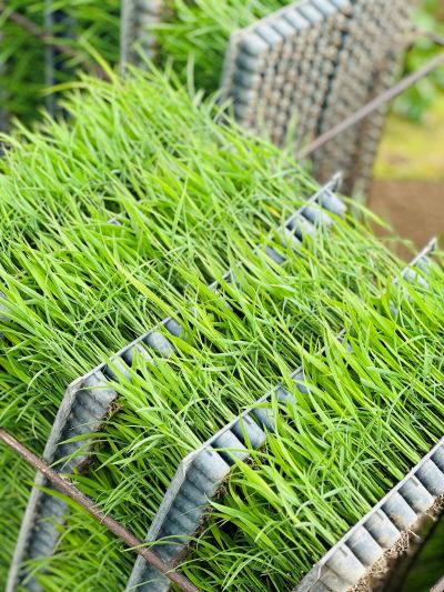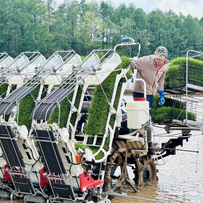 例年であれば、この時期は晴れ間が続き、順調に作業を進められるはずなのですが、今春は雨の日が多く、なかなか思うように作業が進まない状況でした。そんな中でも稲は、立派にたくましく成長しています。